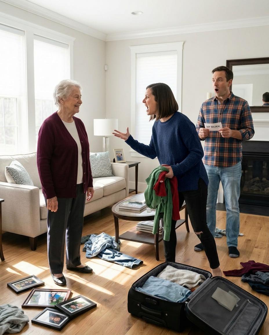 Esa noche, mientras Daniel estaba afuera atendiendo otra llamada, Elise entró furiosa en mi habitación, abrió de golpe mi armario y empezó a meter mis suéteres, zapatos, fotos enmarcadas y medicamentos en dos maletas desgastadas. «¡Fuera!», espetó. «Ahora tenemos una nueva vida, y tú no formas parte de ella».